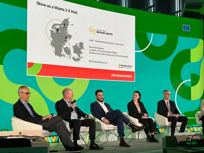 Det er ikke kun Business Skive, som har fået glæde af samarbejdet. Også The European Investment Bank har været glade for samarbejdet gennem C3. Så glade, at de i begyndelsen af juni havde inviteret Mikael Oddershede og en kollega til Bruxelles for at fortælle om deres projekt og netværksarbejde på EU’s Green Week - en årlig begivenhed organiseret af Europa-Kommissionen med fokus på europæisk miljøpolitik. I år var temaet “Cirkulære løsninger for et konkurrencedygtigt EU”.